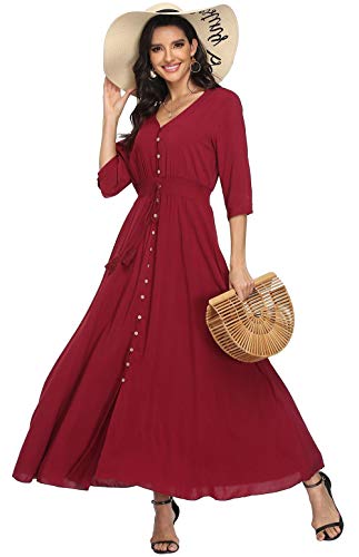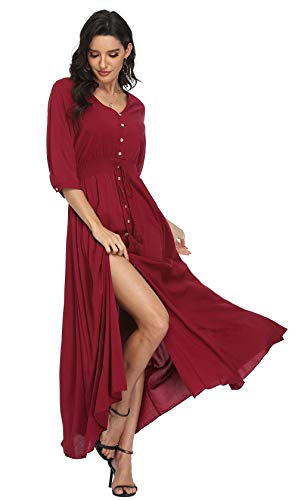 - NOTE: Size: S-XXL. Please scroll down to PRODUCT DESCRIPTION for size details before you make your purchase, Fabric: This summer floral dress is made of 117% Rayon. Great sense of touch, lightweight, skin-touch, breathable, super soft, Features: floral print maxi dress with sleeves, wrap maxi dress with v-neck,a line buttons up flowing split. Has an Elasticated Waistband for a perfect fit, Occasions: The long beach dress is suitable for daily casual, outing shopping, holiday travelling, romantic date, pool parties, sun beach and so on. All in all, various looks and styles perfect for all types of lifestyles, Garment Care: Hand wash recommended. Machine washable as well. Do not bleach