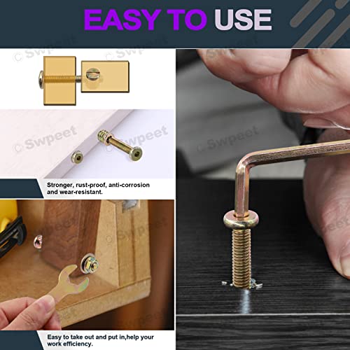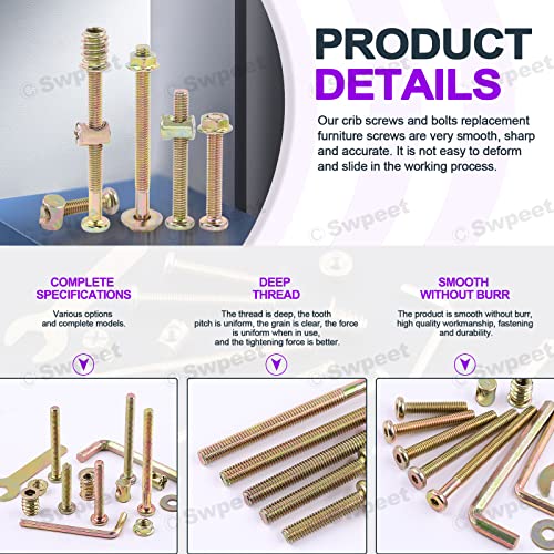 Swpeet 253Pcs M6 x 25/35/45/55/65/75mm Zinc Plated Crib Hardware Screws Kit, Hex Socket Head Cap Crib Bed Bolt and Barrel Nuts Flat Washer and Flange Nuts with Threaded Insert Nuts