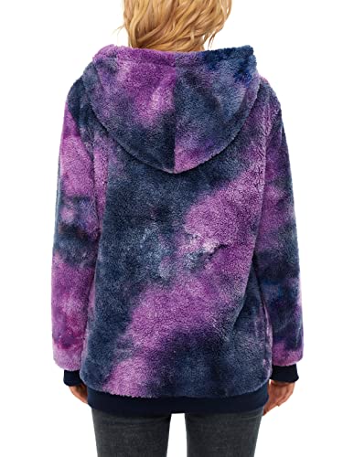 Century Star Women's Fuzzy Hoodie Sport Pullover Hooded Sweatshirt Fleece Hoodies, Y Blue Purple Tie Dye, XX-Large