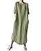 AUDATE Women's Maxi Dress Solid Plus Size Loose Cotton Linen Long Dresses with Pockets, Army Green, 4X-Large