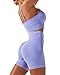 GSKS Women Workout Set 2 Pieces Outfits Seamless Sport Bra High Waist Shorts Legging Yoga Set, Purple, Medium
