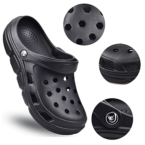 PIMIO Garden Clogs for Women and Men,Slip On Work Shoes with Arch Support,Womens Mens Quick-Dry Water Shoes Casual Sandals,Comfortable Slippers, B Black, 7 Women/5 Men