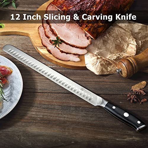PAUDIN Carving Knife, Premium Brisket Knife 12 Inch, Full Tang Design with Granton Blade and Ergonomic G10 Handle, for Cutting Ham, Roast, Ribs, Turkey, Prosciutto