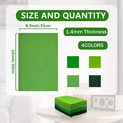 Soft Felt Fabric Sheets, 8"x12" Felt Squares for Crafts, 4 Colors 40 Pieces Assorted Craft Felt for DIY and Handworks Sewing Projects (Green Series)