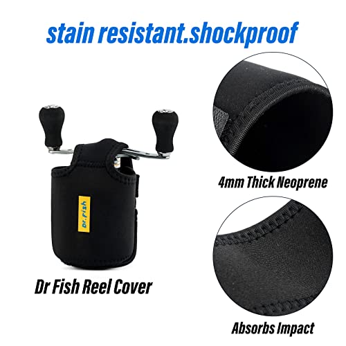 Dr.Fish 2 Pack Baitcasting Fishing Reel Cover Profective Low Profile Neoprene Left Right Handed Black Blue Baitcaster Storage Bags Wraps Reel Case