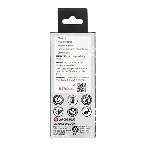 - Hand-Sharpened: Our tweezers tips and scissor blades are hand-sharpened to tame, shape and groom your brows with flawless results. Precisely trim and remove brow hairs to create a beautiful shape that compliments your face., Precision crafted: Designed with precision in mind to get the results you need. Superior tweezer alignment securely grabs each hair at the root. Ultra-sharp Japanese razor blades and hand sharpened scissor blades flawlessly shape brows., Stainless Steel Construction: Our brow products are constructed with high-quality stainless steel for durability and long-lasting performance., How to Shape Brows: A straight brow with a lower arch will create the illusion of a shorter face. An oval face shape is best suited with round, fuller brows. A round face desires definition and length to the face, by accentuating the height of the brow’s arch. The angles of a heart shaped face look best with a softer, thicker, rounded brow., Superior Craftsmanship, Expert Results: Born in Japan over 30 years ago, our products were inspired by the Japanese tradition of exceptional craftsmanship. Today, JAPONESQUE remains committed to this philosophy through our unparalleled research, development, and design process.