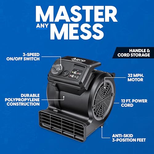 Vacmaster AM201R 3 Speed Floor Fan, 156W 550 CFM Air Mover, Utility Blower Fan, Carpet Dryer for Drying, Cooling & Circulation