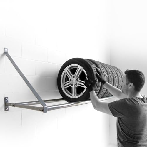 - LONGER: 83 Inches Long heavy-duty steel tubes to hold 8 SUV (245) tire/wheel assemblies., STRONGER: 500 lbs Capacity – strongest wall-mount tire rack on the market., VERSATILE: Adjustable rear crossbar to fit tires of up to 34" OD., HASSLE-FREE INSTALATION: Our Wall-Mount Tire Rack is hassle-free installation, designed to fit standard 16" center to center studs., PRODUCTIVITY: Free up more working space by keeping your tire/wheel assemblies off the floor., HARDWARE NOT INCLUDED: Mounting hardware is not included, as wall materials and installation requirements vary. This allows installers to select the appropriate fasteners for their specific wall type (wood, concrete, steel, etc.).