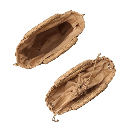 - Premium Handwoven Straw: This women straw bag is made of high quality natural straw with polyester cloth lining. And it is handwoven tightly for high durability, Small Size: The dimensions of straw crossbody bag for beach are around 7.48" H x 9.65" W x 2.76" D; Short top-handle drop approx. 3.7"; Removable long shoulder strap drop approx. 23.6", Multiple Carrying Options: The summer straw purse comes with double top handles and a detachable shoulder strap to give you options for carrying it by hand, across your body or just over the shoulder, Unique Chic Design: Features a half moon structured shape, circle handles and a drawstring closure, this woven straw handbag is a perfect accessory that adds a touch of styles to your spring and summer look, Versatile Satchel: The straw bag for women is lightweight and has room for your phones, cards, lipsticks, coins, napkin paper, keys and other small items. Perfect for everyday use, beach, traveling, shopping, etc.