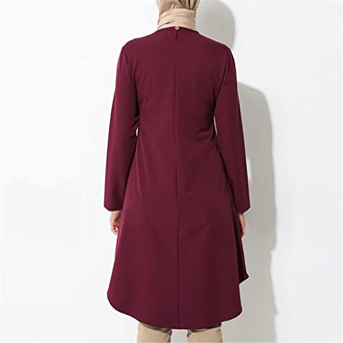 Women's Asymmetrical Blouse, Vintage Muslim Long Shirt, Casual Long Sleeve Female Button Tops Tunic, Wine Red, 4X-Large