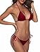 Women Two Piece Bikini Swimsuit Sexy Bathing Suits Halter Triangle Tops String Bikini Sets, Wine, Large