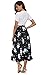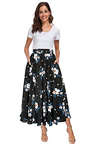 Afibi Women High Waist Floral Print Swing Chiffon Beach Midi Long Skirt with Pockets (XX-Large, Black Blue)