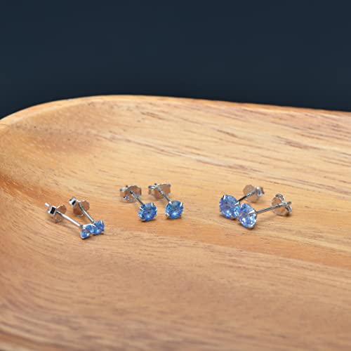 3MM Sterling Silver Earrings Aquamarine Blue Cubic Zirconia Studs for Women Men