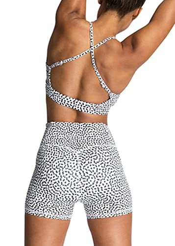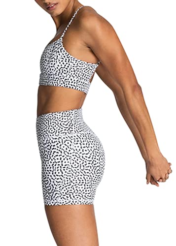 IMEKIS Women's Workout Sets 2 Piece Yoga Outfit High Waisted Biker Shorts Leggings Sports Bra Gym Fitness Clothes Tracksuit, # White Polka Dots, Small
