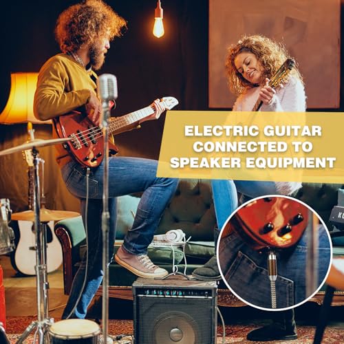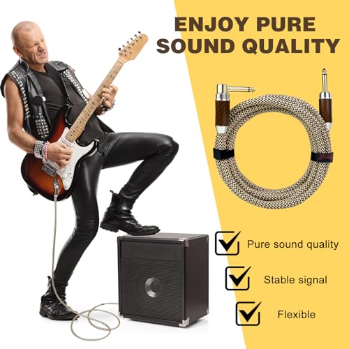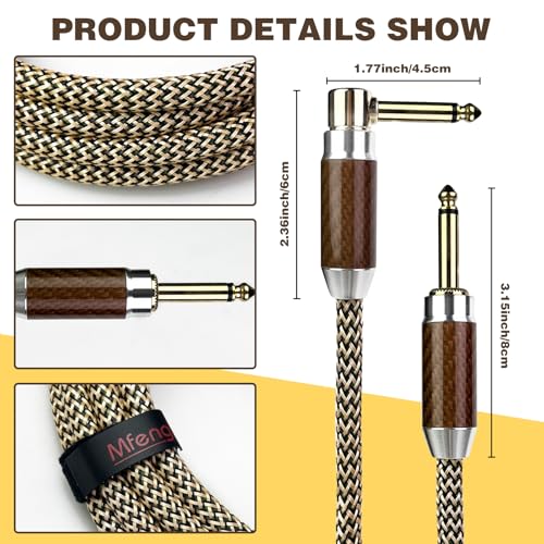 - 🎸[NEW DISIGN]:Unlike any other guitar cables on the market,MFFMFFM guitar cable add carbon fiber shell at the TRS connectors, make the instrument cable more beautiful and better quality., 🎸[NOISE-FREE, HIGH-FIDELITY]:Mffmffm guitar cord uses copper wire high density braid + tin foil + semiconductor material triple processing shielding layer,can better reduce noise and protect sound quality., 🎸[ORIGINAL SOUND TRANSMISSION]:Instrument guitar cable conductor is made of oxygen-free-copper(OFC),has good transmission performance and stable performance., 🎸[SUPERIOR DURABILITY]:Lightweight natural fiber PET braided jacket can maximize avoid accidental bending caused by guitar wire damage and signal loss, and play a role in tensile and dustproof.Straight to right angle design can protect the guitar sockets from unnecessary stress damage,which can well increase the durability of guitar line., 🎸[WIDE COMPATIBLE]:Mffmffm electric guitar cable suitable for musical instrument with interface of 6.35mm diameter,ideal for connecting an guitar/electric mandolin/pro audio/amplifier/speaker/equalizer/keyboard and so on., 🎸[BEST GIFT]:This guitar patch cord comes in an elegant cowhide carton,is the best gift for beginner/men/musical instrument lover., 🎸[LIFETIME WARRANTY]:Every guitar cord is backed by superior quality and under strict quality inspection. Our aim is 100% satisfied customers. Backed by a Mffmffm lifetime warranty,you can buy it without worry.