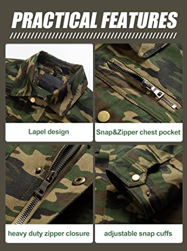 Pursky Men's Lightweight Casual Work Coat Cotton Tactical Cargo Jacket With Stand Collar - Camo S