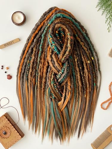 - Handmade dreadlocks, Brown, Ginger and Dark Emerald color., Tree Roots Dreadlock, Synthetic Textured Dreadlocks, Synthetic dreadlocks are the most convenient way to diversify your look without harming your hair.