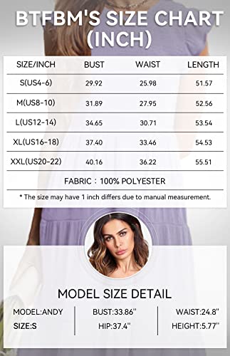 BTFBM Women Casual Short Sleeve Crew Neck Summer Dress Bohemian Floral Printed Flowy Maxi Dresses Tiered Cocktail Dress, Solid Light Purple, Small