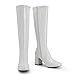 DREAM PAIRS Women's Gogo Boots, Square Toe Chunky Heel Knee High Fall Boots Disco Shoes for Women,Size 7.5,White/Patent/pu,SDKB2231W