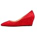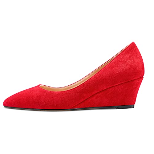 Aachcol Women Wedge Pumps Mid Heel Pointed Toe Slip-on Dress Shoes Wedding Party 2 Inch, Red Suede, 7
