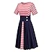 Wellwits Women's Stripes Vintage Retro 1950s Style Swing Cocktail Dress, Red Navy, XX-Large