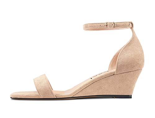 Aachcol Women Wedge Sandals Square Open Toe Mid Low Heel Ankle Strap Dress Shoes 2 Inch, Beige Natural Suede, 9