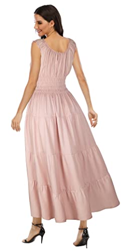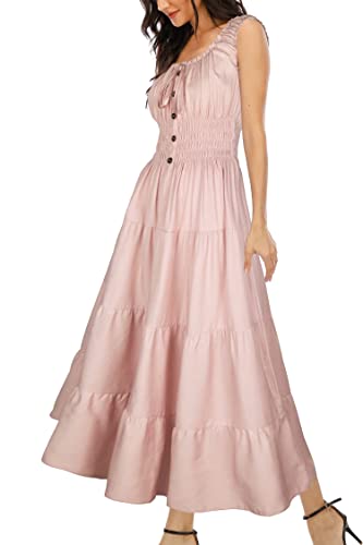 - Versatile Collar - Scoop Neckline, the most temperament collar in the dress, showing your graceful and intellectual beauty. Elastic rubber band collar with ribbon bow attaching the central front of the neckline, make you look stylish and elegant in any occasion, Bohomian Maxi Dress Design - Sleeveless ruffle sleeve hole and collar with buttons decorating on the central front, A-line style with flowy hem, as a boho beach dress for your vacation and daily wearing., Occasion - Perfect for daily wear, vacation, beach, pool, travel, dating, office, shopping, back to school, nightlife,commuting leisure time, parties, wedding or other occasions, Loose Fit Sizing Dress:S=(US 4-6),M=(US 8-10),L=(US 12-14),XL=(US 16-18),XXL=(US 20-22), Wash Instruction: Hand/Machine washable with cold water recommended, do not bleach, iron in low, hang or line to dry