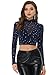 Allegra K Women's Christmas Costumes Stars See Through Mock Neck Mesh Crop Top Dark Blue Small