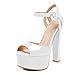 SAMMITOP Women's Open Toe Chunky Heel Ankle Strap Sandals Platform High Heel Shoes, White, 10
