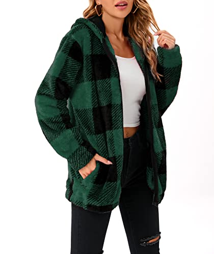 Womens Plaid Fleece Jackets Casual Fall Winter Warm Fuzzy Hoodies Coats