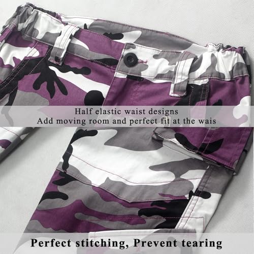 Women's Cotton Casual Military Army Cargo Combat Work Pants with 8 Pocket, Purple Camo, 12