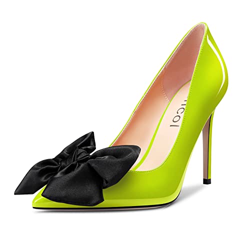 Aachcol Women Stiletto High Heel Pumps Slip-on Pointed Toe Dress Shoes Office Party Wedding Patent 4 Inch, Green B, 8