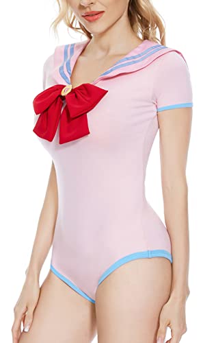 CutiePlusU Button Crotch Onesie Adult Romper Bodysuit Cosplay-Magical Sailor Onesie Skirt Set Set SkybluePink 2XL