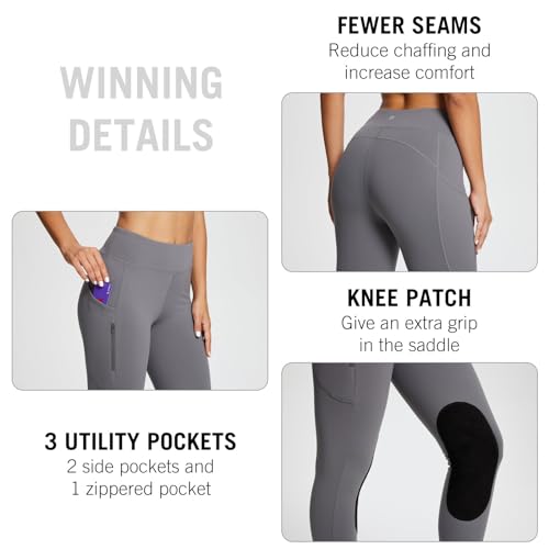 baleaf Women's Winter Riding Pants Horse Breeches Knee-Patch Fleece Horseback Equestrian Tights Pockets Leggings Grey S