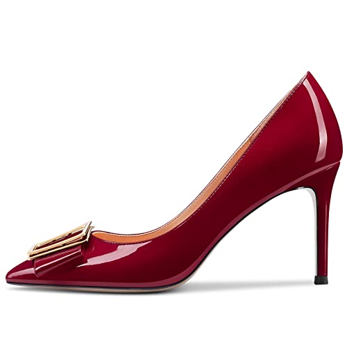 Aachcol Women Stiletto High Heel Pumps Slip-on Pointed Toe Dress Shoes Office Party Wedding Patent 3 Inch, Burgundy Red, 8