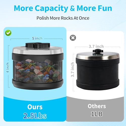 - ๐๐-๐๐๐ฒ ๐๐๐ญ๐ข๐ฌ๐๐๐๐ญ๐ข๐จ๐ง ๐๐ฎ๐๐ซ๐๐ง๐ญ๐๐ & ๐-๐๐๐๐ซ ๐๐๐ซ๐ซ๐๐ง๐ญ๐ฒ: Enjoy peace of mind with our extended 90-day refund guarantee and 1-year warranty. If you miss Amazon's 30-day return window, simply contact our ๐๐-๐๐๐ฌ๐๐ ๐๐ฎ๐ฌ๐ญ๐จ๐ฆ๐๐ซ ๐ฌ๐๐ซ๐ฏ๐ข๐๐ team for ๐ก๐๐ฌ๐ฌ๐ฅ๐-๐๐ซ๐๐ ๐ซ๐๐ฉ๐ฅ๐๐๐๐ฆ๐๐ง๐ญ ๐จ๐ซ ๐ซ๐๐๐ฎ๐ง๐ ๐๐ฌ๐ฌ๐ข๐ฌ๐ญ๐๐ง๐๐. We offer ๐๐/๐ ๐๐ฅ๐๐ข๐ฆ ๐ฌ๐ฎ๐ฉ๐ฉ๐จ๐ซ๐ญ to ensure your complete satisfaction., SAFE FOR KIDS โ CERTIFIED NON-TOXIC AND FAMILY FRIENDLY: KomeStone rock tumblers enjoys the CPC certification (Children's Product Certificate) issued by the federal government, and made from non-toxic, child-safe materials, ensuring a fun and educational STEM learning experience parents can trust. Smooth edges, secure closures, and low-noise operation make it a safe and engaging rock tumbler gift for curious young explorers., DIVE INTO THE FUN ROCK TUMBLING: KomeStone rock tumbler is for turning rough raw rocks into smooth gemstones. Youโll be excited to see the rocks change with each cycleโa great lesson in patience for kids or inspiration for jewelry-making moms., 2025 K1 PRO UPGRADE: Professional Tumbling Innovation Features a smart LCD with 9-day programmable timer, 3 speeds, and pause function. Its brushless motor ensures 20,000+ hours of quiet operation, while the military-grade thickened rubber barrel guarantees durability. Create museum-quality gemstones with pro-level control., 2.5 LB EXTRA LARGE CAPACITY & QUIETER: We use the 100% soft rubber barrels which can absorb the impact of the tumbling rocks and itโs 75% quieter than that of other plastic drums, which likes the sound of a working dishwasher. With 2.5lbs extra large barrel, that means you can polish more rocks at once than 1 lb drum., COMES WITH EVERYTHING YOU NEED: Including the tumbler machine, the barrel, 1lb rough rocks, extra belts, 4 polishing grits and ceramic filler media (As a gift in package) and other accessories, etc. Especially the full-color Instruction book, detailed and clear to follow, even a starter knows how to use it independently., SCIENCE-BACKED POLISHING FOR PRO-LEVEL RESULTS: Achieve museum-quality shine with our 4-stage grit system (60/120/150/1200) and precision ceramic media. The leak-proof stainless steel lid ensures mess-free tumbling, while our exclusive guide unlocks pro techniques., About KomeStone: KomeStone rock tumblers are the first with brushless motor technology and now lead U.S. sales by a wide margin. We are more than a manufacturer โ weโre your partner, offering reliable products and lifetime support you can count on.