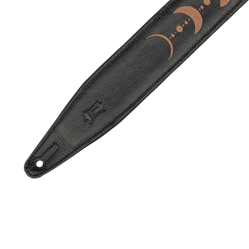 Levy's Leathers 2.5" Padded Garment Leather Moon Phases Embroidery Guitar Strap, Adjustable from 48" to 55.5"; Black and Brown (MG317MP-BLK-BRN)