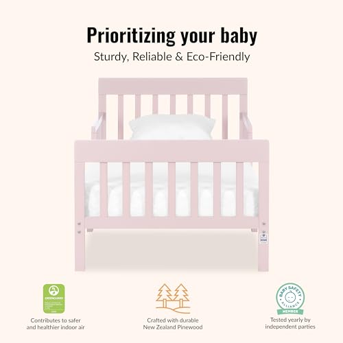 Dream On Me Finn Toddler Bed in Pink, Greenguard Gold and JPMA Certified, Non-Toxic Finish, Made of Sustainable New Zealand Pinewood, Wooden Nursery Furniture