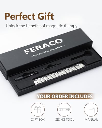 Feraco Titanium Magnetic Bracelet for Men-3X Strength,Carpal Tunnel Magnetic Bracelet with 3 Rows Ultra Strength Magnets,Gifts for Men,Adjustable Size
