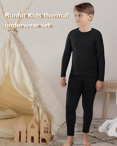 - 【Ultra Soft & Warm Winter Gear】 Introducing the Runhit boys' thermal underwear set, made of 92% Polyester and 8% Spandex for ultimate softness and warmth. Keeps kids cozy indoors or outdoors, their winter adventure never ends., 【Great Moisture Wicking Performance】 Runhit's moisture-wicking fabric keeps youth dry, adds warmth, and reduces heat loss during outdoor activities. Controls odors during exercise., 【Tops & Bottoms Included】 Runhit's thermal long sleeve shirts for teens offer 4-way stretch and reduced chafing. Compression long johns provide warmth and comfort.The fly/peehole makes it easier to identify the front and back of the compression pants., 【Suitable For Outside Or Base layer Wear】 Must-have for young boys during cold winters. Ideal for running, snowboarding, basketball, and more. Great as base layer or loungewear., 【Warm Gift For Youth Kids】 Give the gift of warmth and love with the Runhit Youth Kids Thermals Set. Perfect for Christmas, birthdays, or holidays. Snug and comfy.