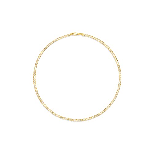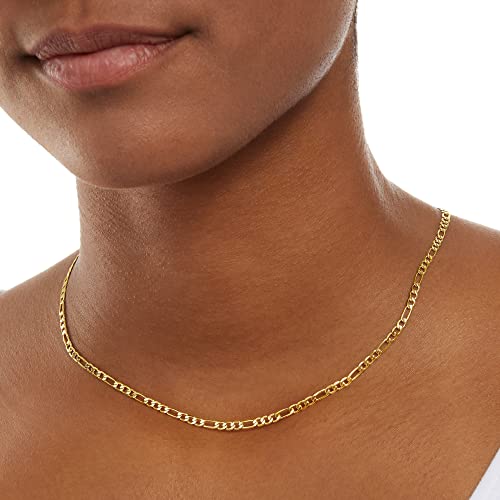 - STYLE: This 14K Gold Plated Figaro Chain Necklace is 16"; this stylish necklace features a fine figaro with an easy and secure clasp; perfect on its own or for stacking and layering with your favorite Amazon Essentials chains., MATERIAL: This Figaro Chain Necklace is crafted in 14K gold over brass, DETAILS: Hypoallergenic, nickel and lead free., CARE: Plated with anti-tarnish coating; store in a cool, dry place in its own container or compartment; limit exposure to extreme temperatures, perfume, and household cleaning products.
