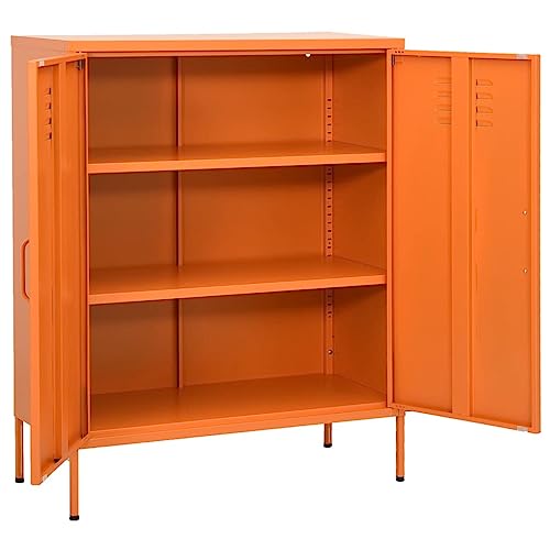 vidaXL Industrial Steel Storage Cabinet with 2 Adjustable Shelves - Orange, Sturdy, 31.5"x13.8"x40"