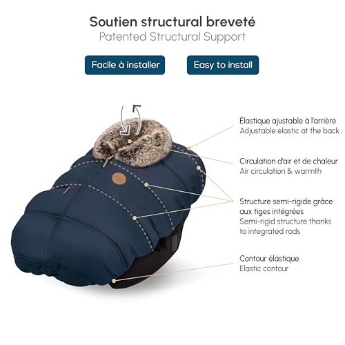 - NO SNOWSUIT NEEDED: Designed to keep your baby warm in temperatures ranging from -30°C to 5°C. Our car seat covers are laboratory-tested for resistance to cold. Plus, they are machine washable !, UNIVERSAL FIT: The Petit Coulou winter cover for baby car seats is an essential accessory for parents in Canada. It is designed to fit all rear-facing car seats up to 35 lbs (16 kg), excluding convertible car seats. For outdoor activities, our insulated backing is recommended (sold separately)., HIGH QUALITY MATERIALS: Crafted with care, our fabric is water-repellent, breathable, and made from hypoallergenic materials. The interior features a soft, anti-pilling fleece lining for added warmth. Additionnal details include a non-removable collar made of premium synthetic fur, a stylish vegan leather Petit Coulou tab and a practical zipped outside pocket. Machine wash in cold water on a gentle cycle with the cover closed and turned inside out. Hang to dry to maintain its impeccable look and feel., EASY INSTALLATION: Our baby seat cover has a completely open back with an elasticated contour that makes it easy to put on and take off and ensures a snug fit. Our car seat winter cover won't shift or slip when you're out and about in windy conditions., PATENTED DESIGN: Over 100,000 babies have been kept warm and safe in their car seats with Petit Coulou’s unique covers. The Petit Coulou covers are the only baby seat covers on the market designed with semi-rigid rods offering optimal structural support to avoid collapsing on the baby. This unique design creates an igloo-like effect, ensuring your baby stays warm and cozy throughout the winter.