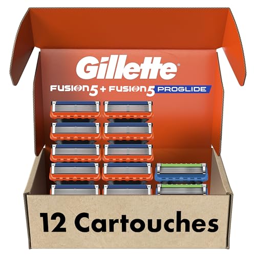 Gillette Men's Razor Blade Refills, 10 Fusion Cartridges + 2 ProGlide Cartridges, Total Pack of 12