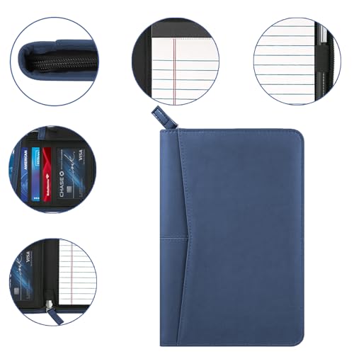 Gorbado Small Portfolio Organizer, A5 Zippered Business Portfolio, Junior Padfolio Folder Binder for Women & Men, 5 x 8 Writing Pad Included, Navy Blue
