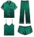 SWOMOG Womens 4pcs Pajamas Sets Silk Satin Sleepwear Sexy Cami with Button Down Short Sleeve Shirt Pjs Loungewear Persian Green X-Large