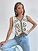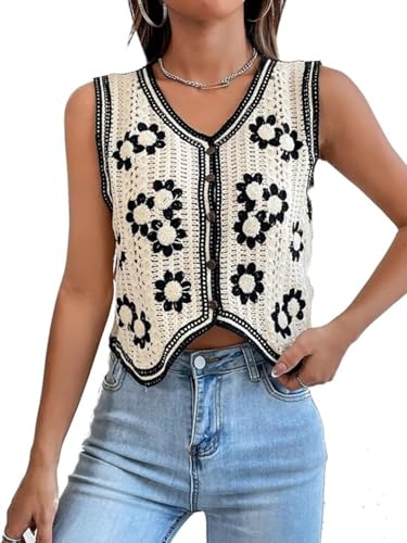 Verdusa Women's Button Front V Neck Sleeveless Floral Pattern Knit Sweater Vest, Beige, Small