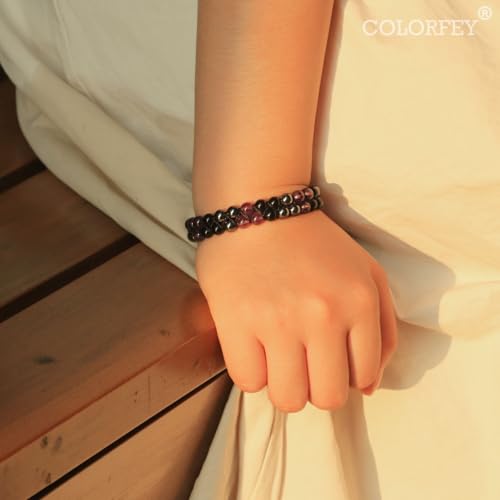 - [Grounding Energy Crystal Beads] - The triple protection bracelet associate nature amethyst, black obsidian and hematite to bring you the most powerful protective energy. Amethyst the birthstone of February increases psychic ability and intuitive powers, promotes a calm mind and deep sleep. The authentic obsidian helps to clear your negative energy and make the wearers protected. The Hematite helps to release pressure, dispels negativity and “Purifies” the emotional stress in the body., [Made by Great Artisan]- Every piece of our amethyst crystal bracelets for women are meticulously handcrafted in by great skilled artisans with 1hour to bring the nature gemstones a new life. This triple crystal bracelet made by energy pyramid shape with adjustable durable cord, comfortable fit most wrists sizes from 6.9 inch to 8.26 inch (17.5 cm to 21 cm). Measure your wrist before order., [Strictly Screened Protection Beads]- at COLORFEY, we use natural amethyst, obsidian and hematite stone materials you rarely see, to surprise and delight you with the most beautiful creations of the Nature., [Healing Bracelet for Gift]- Each amethyst crystal bracelet for women is packaged in a upscale jewelry box, make it a great meaningful gift for families, lover and friends from teenager to elder on Christmas, Thanksgiving day, Halloween, Birthday, Valentine's Day, and other holiday events, bring good luck and prosperity for yourself and people you love., [The Love Promise]- All our triple protection bracelets for women are fast shipped in the US, we provide free replacement or refund within 90 days for orders, if need help, we always here, enjoying the friendly support anytime.