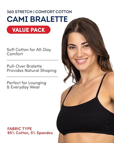 Fruit of The Loom Women's Spaghetti Strap Cotton Pullover Sports Bra Value Pack, Black/Heather Grey/Olive/Purple/Lilac/Dusk, 36