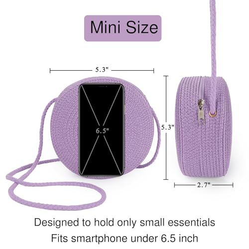 Yomietar Womens Mini Round Straw Crossbody Bag Beach Shoulder Bag Handbag Purse for Summer, Lilac